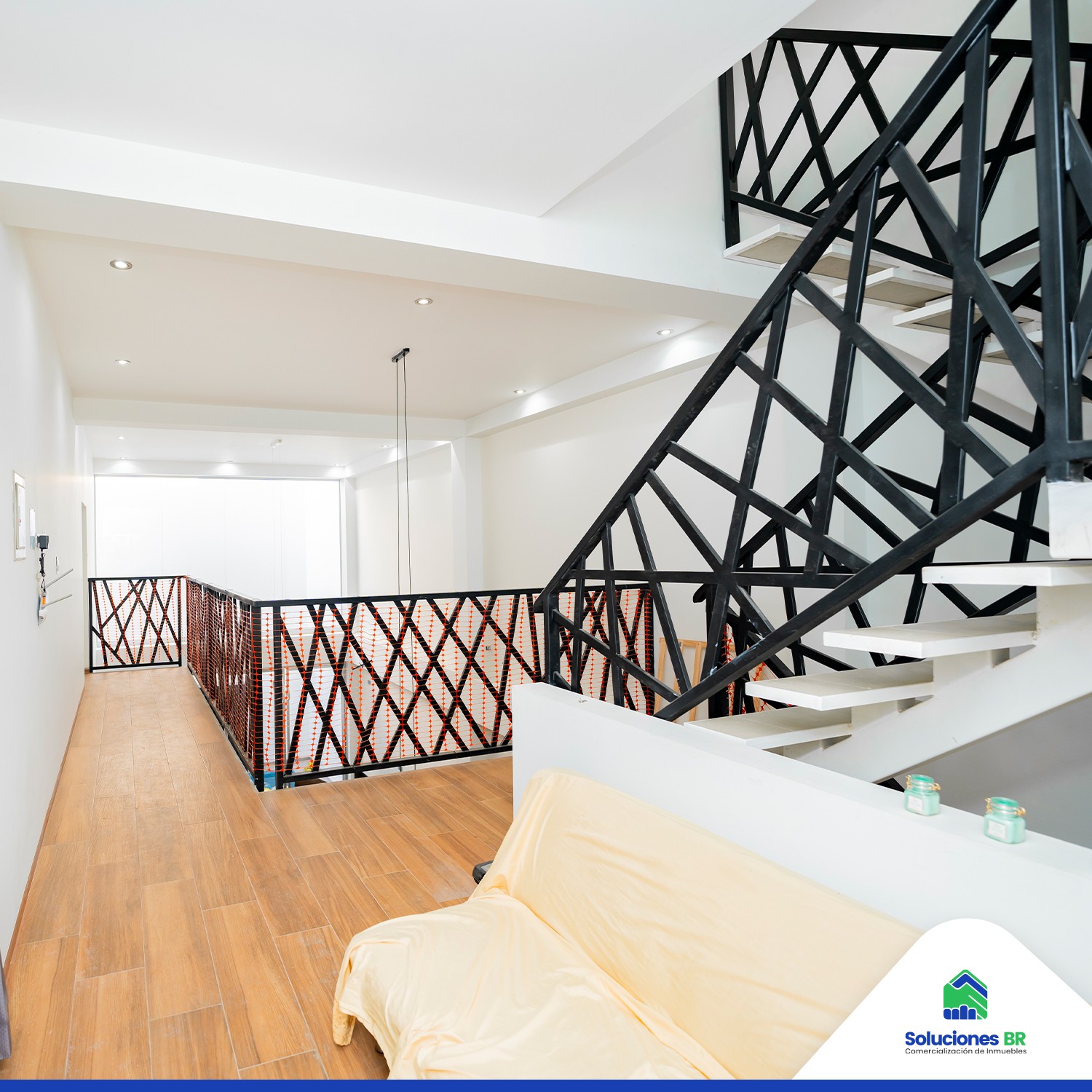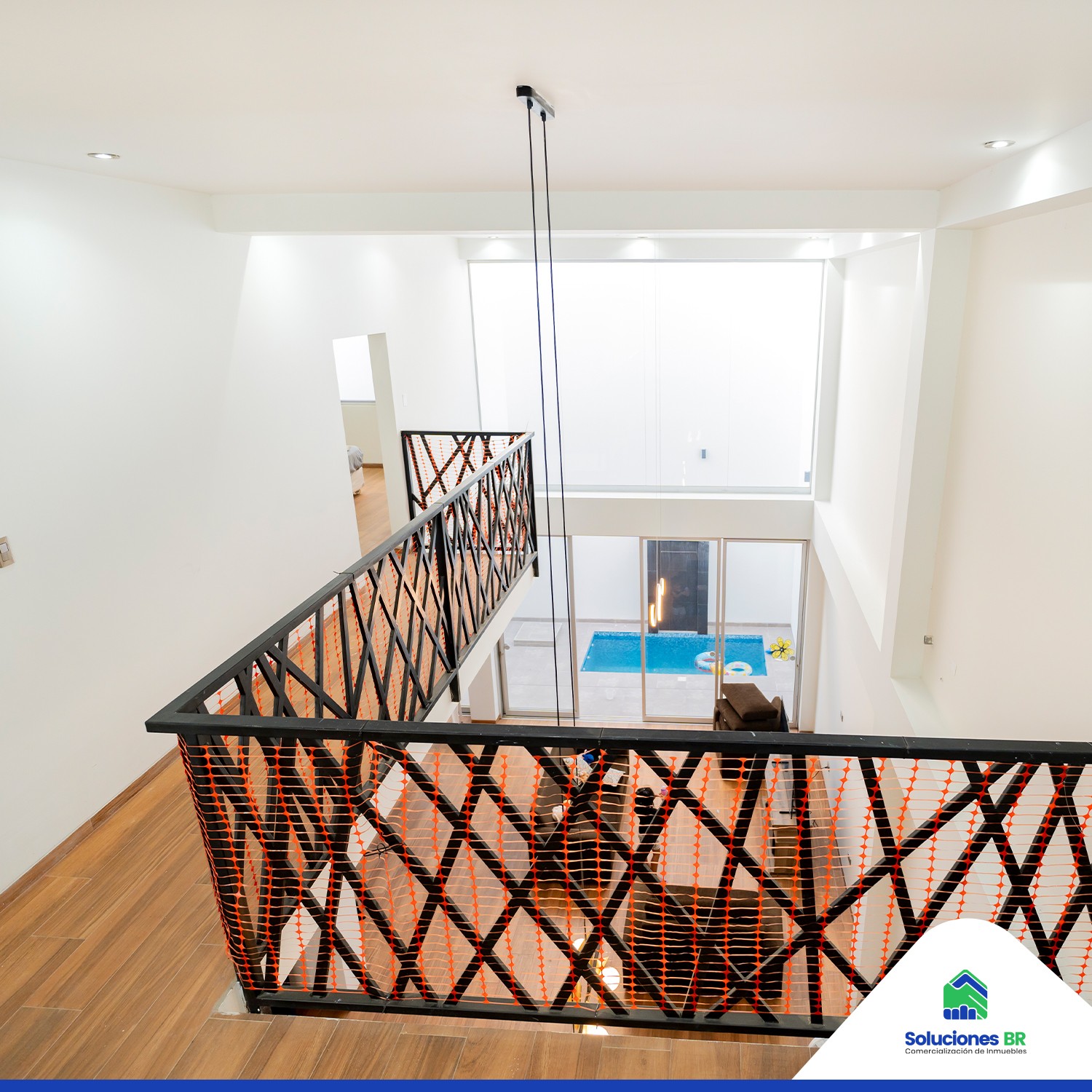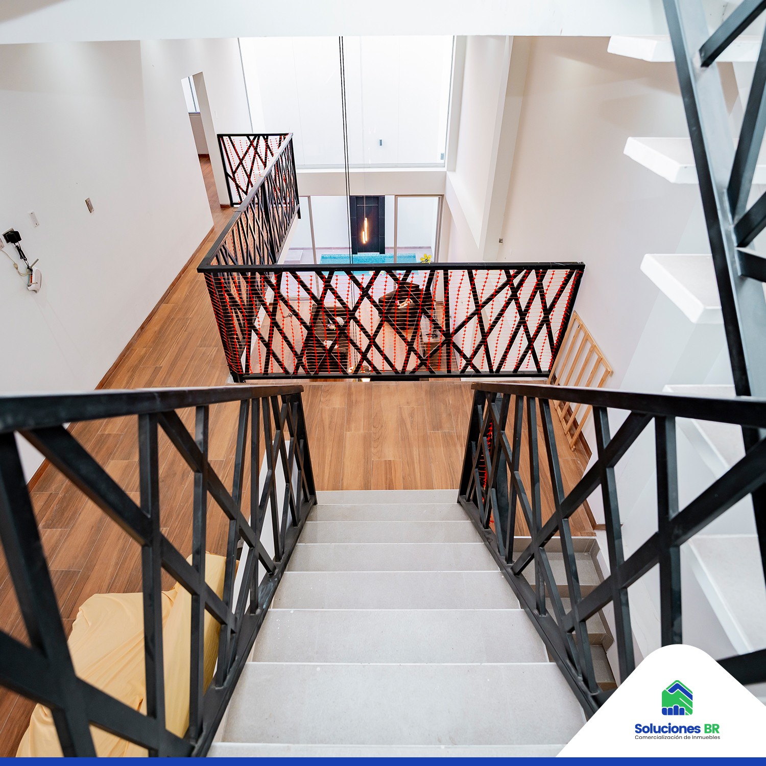 • Acabados de lujo con porcelanato estilo madera y barandas de acero.