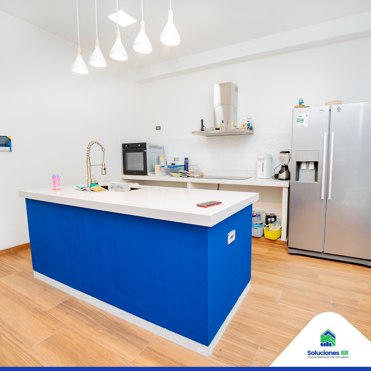 • Cocina moderna con isla de cuarzo, equipada con electrodomésticos de alta calidad.