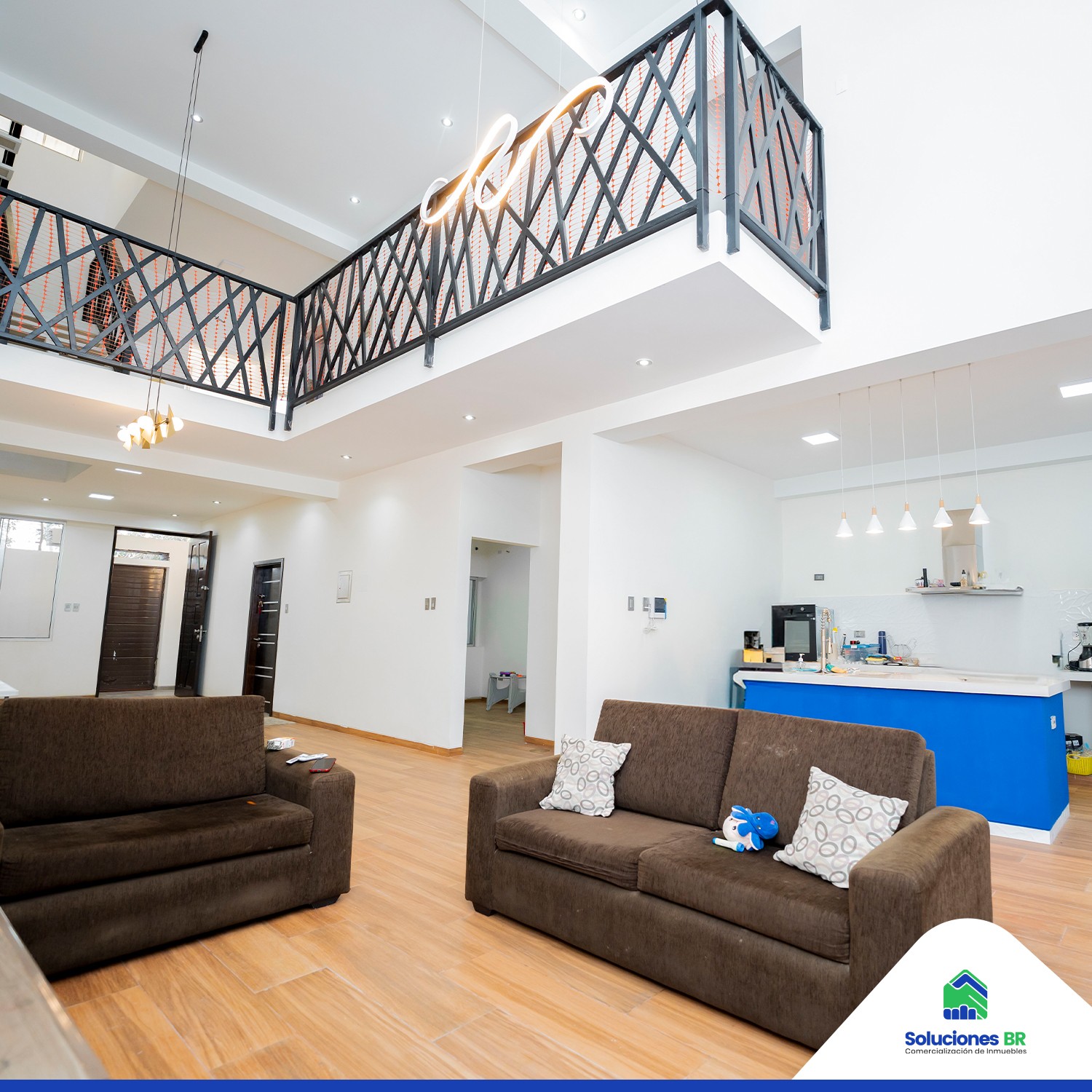 • Amplia sala-comedor de doble altura, perfecta para tus reuniones familiares.