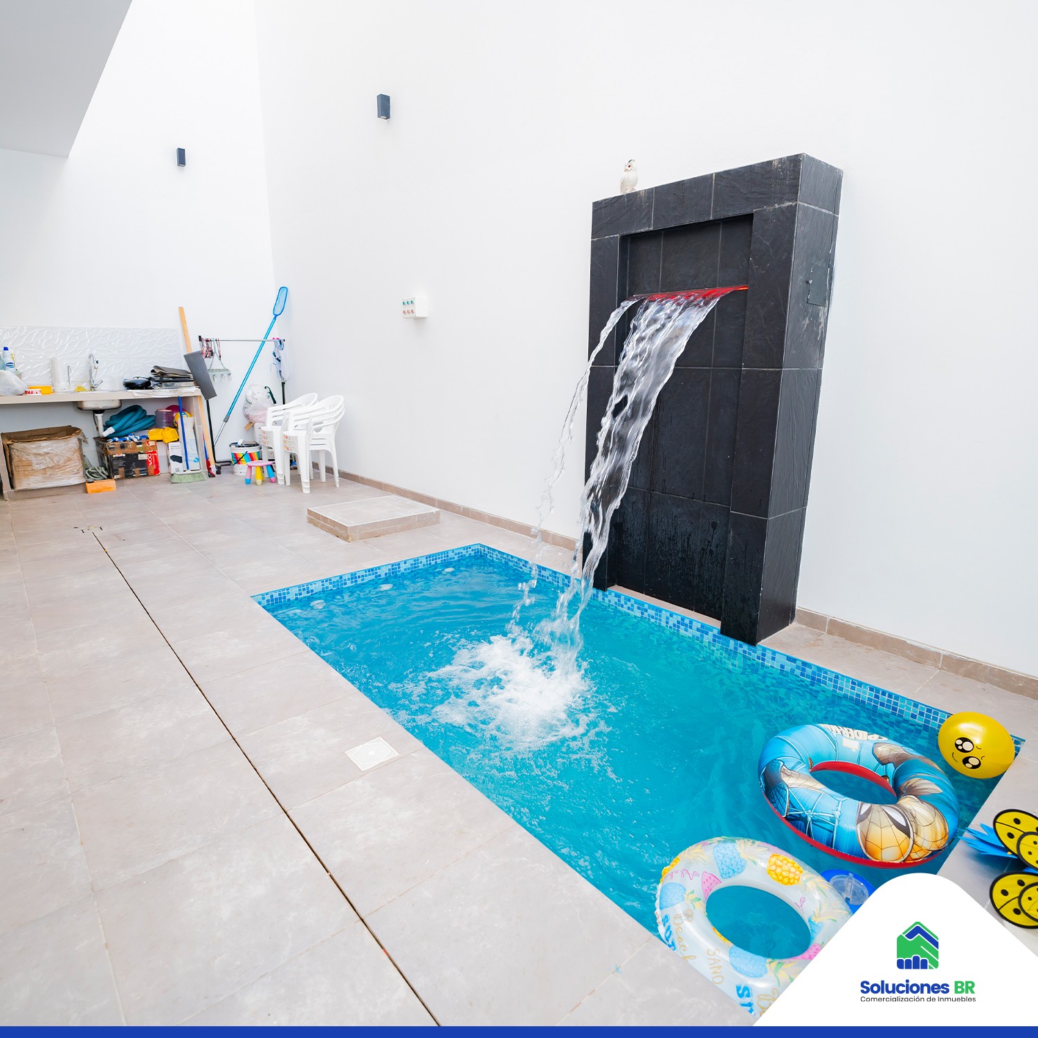 • Cochera espaciosa y piscina con cascada, ideal para disfrutar los días soleados.
